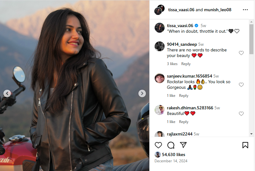 दावे की पड़ताल में कथित तौर पर आत्महत्या करने वाली छात्रा कृति की बताकर शेयर की जा रही तस्वीर को रिवर्स सर्च किया। इस दौरान वायरल तस्वीर हमें ज्योति ठाकुर (tissa_vaasi.06) नाम के इंस्टाग्राम अकाउंट पर अपलोड मिली। अपने इंस्टाग्राम अकाउंट पर ज्योति ठाकुर ने खुद को एक कंटेंट क्रिएटर बताया है।