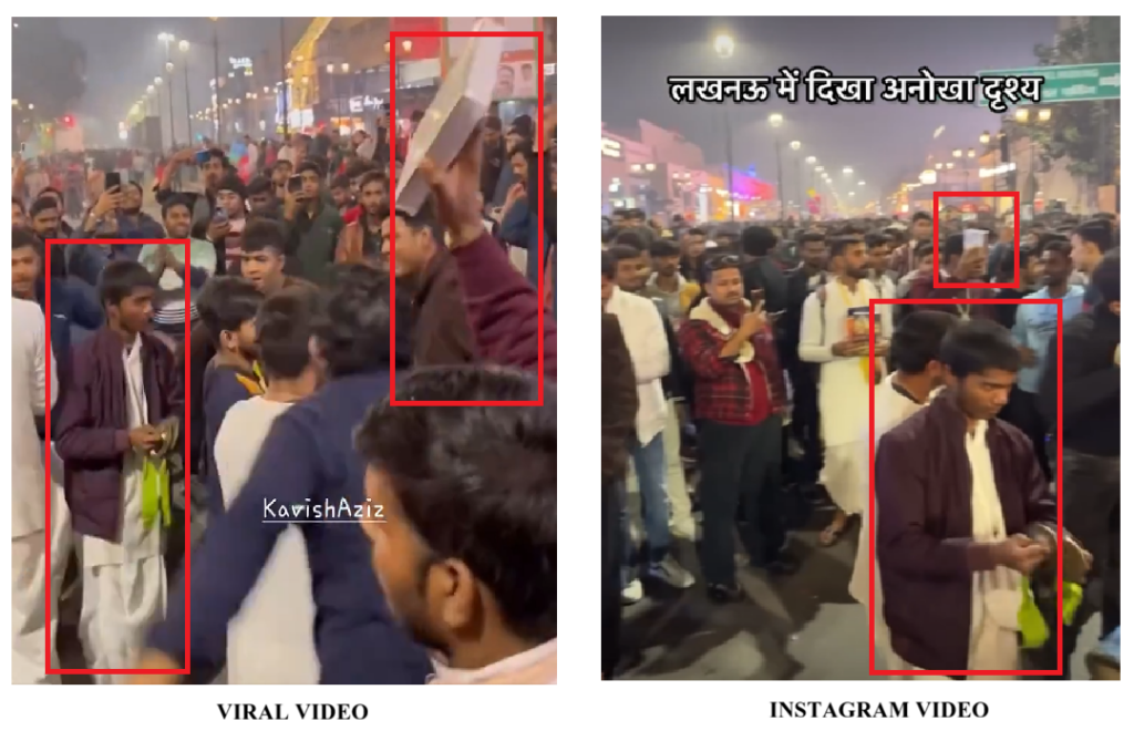 दावे की पड़ताल में वायरल वीडियो के कीफ्रेम को रिवर्स सर्च करने पर इससे मिलता जुलता वीडियो हमें 24 दिसंबर 2024 को Lucknow memes नाम के इंस्टाग्राम अकाउंट पर पोस्ट मिला। दोनों वीडियो का आपस में मिलान करने पर दोनों वीडियो में कई एक जैसे लोग भजन करते दिखे।