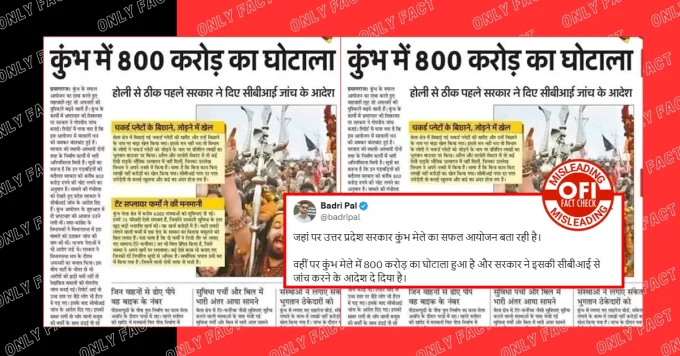 सोशल मीडिया पर एक अख़बार की कटिंग वायरल हो रही है, जिसमें दावा किया गया है कि कुंभ में 800 करोड़ रुपये का...