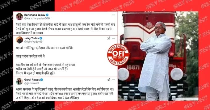 सोशल मीडिया पर दावा किया जा रहा है कि लालू प्रसाद यादव देश के इकलौते रेल मंत्री थे, जिनके कार्यकाल में रेलवे ने...