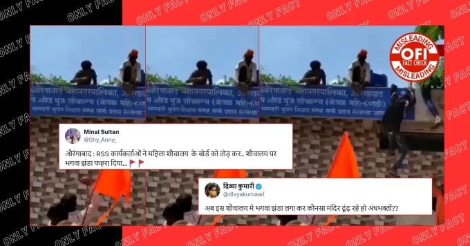 सोशल मीडिया पर एक वीडियो वायरल हो रहा है, जिसमें कुछ लोग भगवा झंडा लेकर एक शौचालय पर लगे बैनर को तोड़ते हुए...