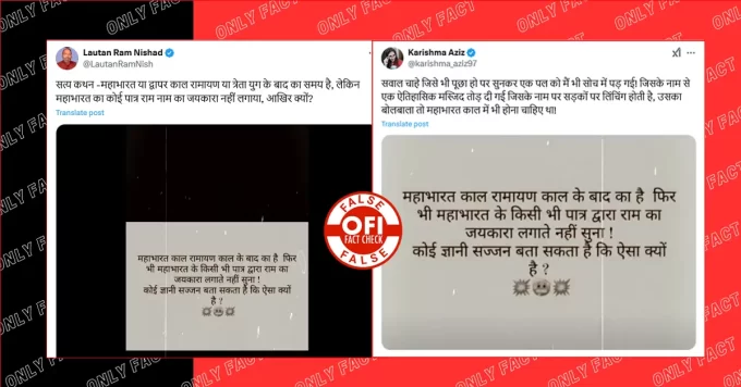 सोशल मीडिया पर एक वीडियो क्लिप वायरल कर दावा किया जा रहा है कि ‘महाभारत काल रामायण काल के बाद का है फिर...