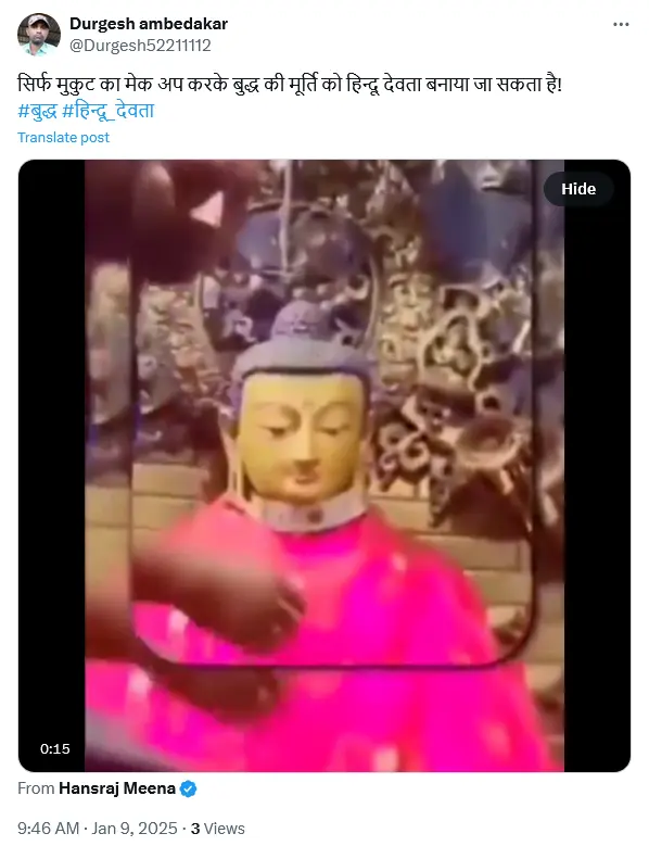 | दावा | बुद्ध की मूर्ति को हिंदू देवता बताकर पूजा जा रहा है। |