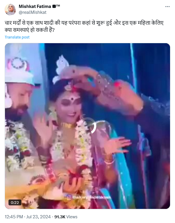 | 14. चार मर्दों से शादी करने का वायरल वीडियो स्क्रिप्टेड है | हिंदू महिला ने चार मर्दों से एक साथ शादी की। | वायरल वीडियो स्क्रिप्टेड है। वीडियो में नजर आ रही महिला सुदीपा एक सोशल मीडिया इन्फ्लुएंसर हैं। |
