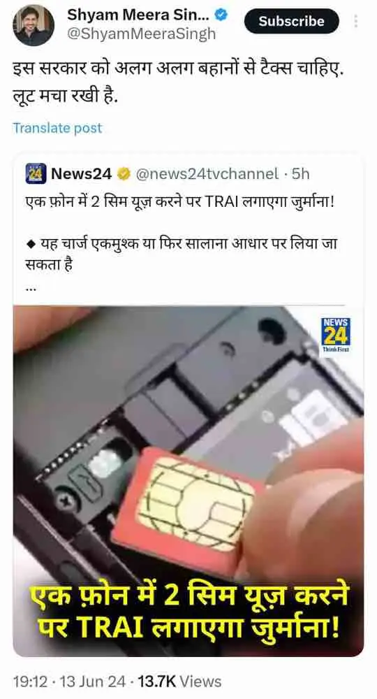 फेक और भ्रामक खबरों के युग में जब किसी को सही खबर की आवश्यकता होती है तो वह मुख्यधारा मीडिया की ओर रुख करता है। लेकिन यदि मुख्यधारा मीडिया स्वयं भ्रामक और फेक न्यूज़ को प्रसारित करने लगे, तो इसे क्या कहा जाए! न्यूज़ 24 एक मुख्यधारा मीडिया है, इस चैनल की ‘थिंक फर्स्ट’ टैगलाइन है।