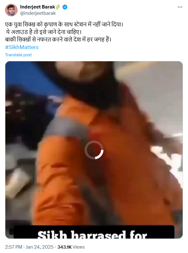 | 5. दिल्ली मेट्रो में कृपाण लिए सिख यात्री को रोके जाने का वीडियो तीन साल पुराना | एक युवा सिक्ख को कृपाण के साथ स्टेशन में नहीं जाने दिया। ये अलाउड है तो इसे जाने देना चाहिए। बाकी सिक्खों से नफरत करने वाले देश में हर जगह हैं। | वायरल वीडियो दिल्ली मेट्रो स्टेशन का अप्रैल 2022 का है. इस मामले में सुरक्षा कर्मियों ने एक सिख युवक को रोककर उसकी कृपाण के आकार की जांच की थी। |
