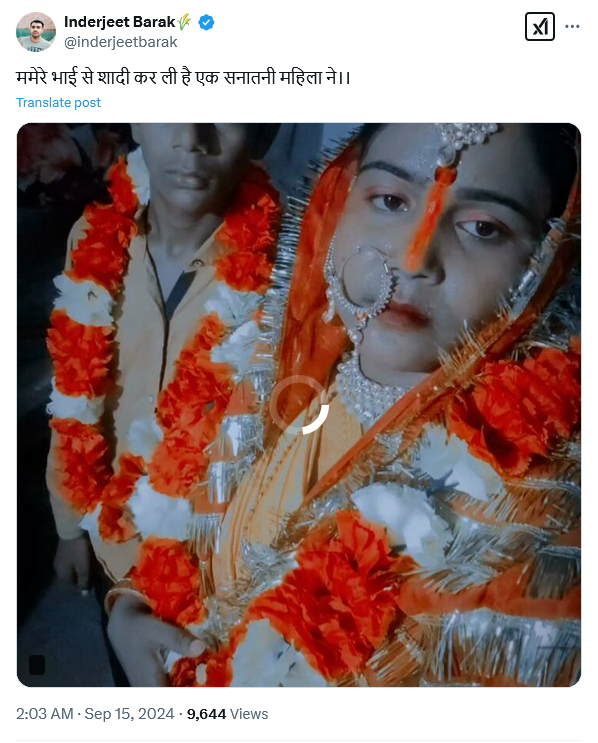 | 18. हिंदू महिला द्वारा मामा के लड़के से शादी का वीडियो स्क्रिप्टेड है | एक सनातनी महिला ने ममेरे भाई से शादी कर ली है। | हिंदू महिला द्वारा मामा के लड़के से शादी का वीडियो स्क्रिप्टेड है। इसे असल का बताकर भ्रामक रूप से शेयर किया जा रहा है। |