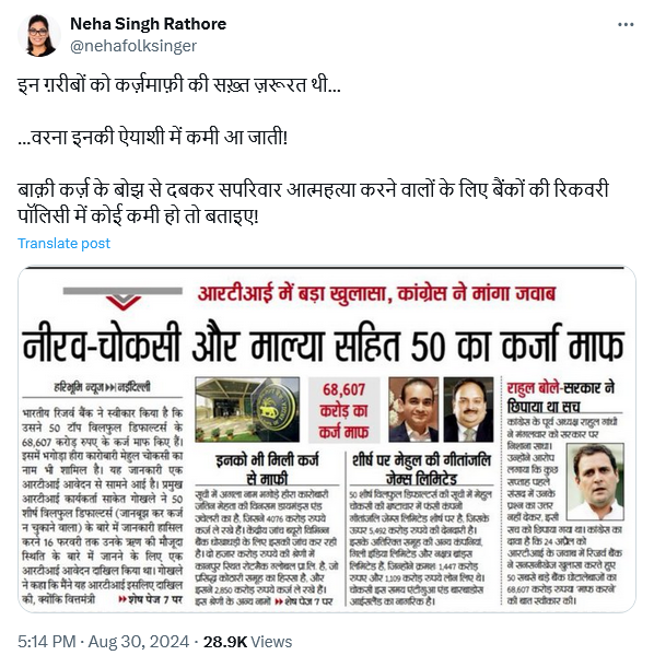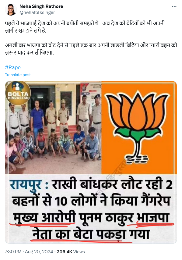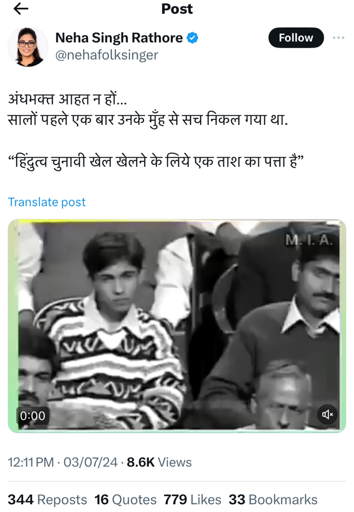 — Neha Singh Rathore (@nehafolksinger) October 17, 2024