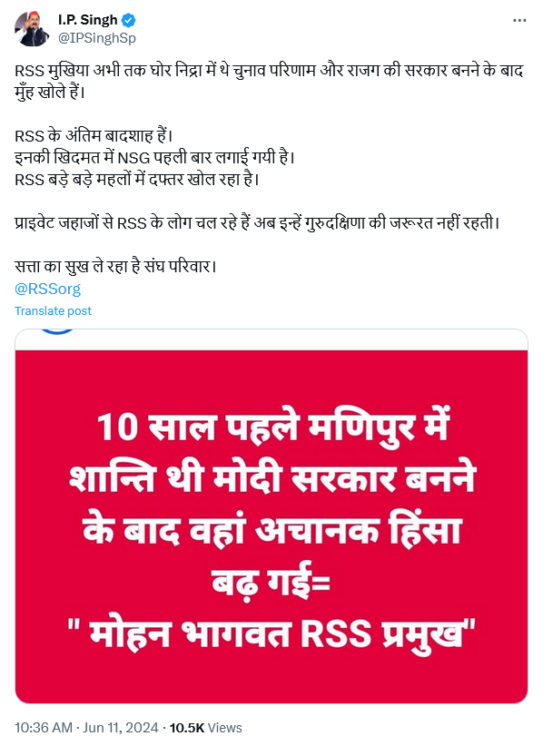 निष्कर्ष: इस प्रकार, ये सभी फर्जी दावे स्पष्ट रूप से दिखाते हैं कि सपा नेता आई.पी. सिंह बार-बार फर्जी और भ्रामक खबरें फैलाते हैं। वह तथ्यों को अपने छिपे हुए एजेंडे के अनुसार तोड़-मरोड़ कर पेश करने में माहिर हैं। आईपी सिंह द्वारा साझा की गई फेक न्यूज़ से यह स्पष्ट होता है कि वे न केवल गलत जानकारी फैलाने में माहिर हैं, बल्कि उसमें आनंद भी लेते हैं।