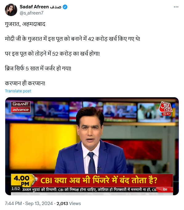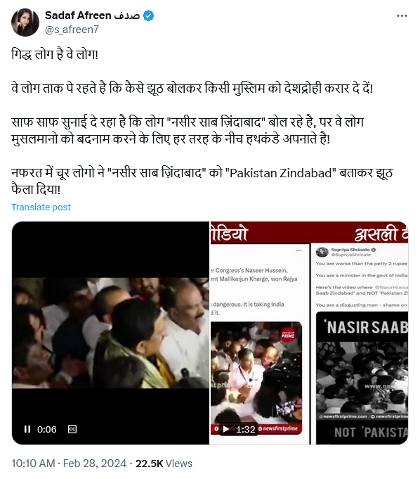 सदफ के मुताबिक वो पत्रकार हैं लेकिन सदफ सोशल मीडिया में हिंदुओं और भारत की छवि को खराब करने और सामाजिक विभाजन को बढ़ाने के उद्देश्य से भ्रामक जानकारी फैला रही हैं। साथ ही वो लगातार भारत सरकार के खिलाफ लोगों को भडका रही हैं। आइये अब तक सदफ आफरीन द्वारा फैलाई गई कुछ फर्जी खबरों पर नजर डालें।