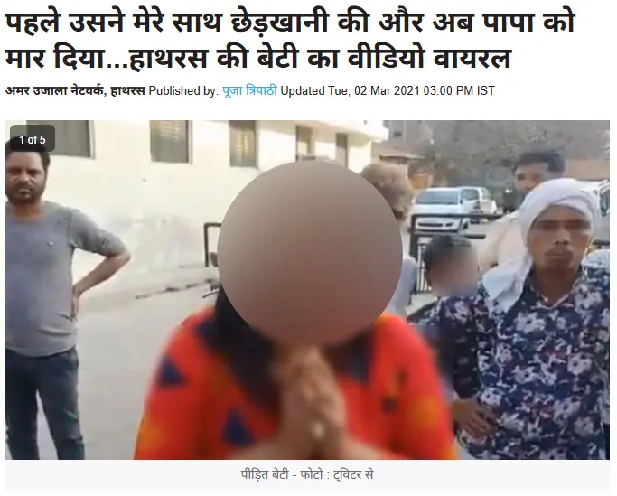 दावे की पड़ताल में संबंधित कीवर्ड की मदद से गूगल सर्च करने पर हमें 2 मार्च 2021 को प्रकाशित अमर उजाला की रिपोर्ट मिली। रिपोर्ट के मुताबिक, यह घटना उत्तर प्रदेश के हाथरस की है। यह पूरा मामला उस किसान की हत्या का है जिसे बेटी से छेड़छाड़ का मुकदमा वापस न लेने के लिए आरोपियों ने मौत के घाट उतार दिया। दरअसल, साल 2018 में हाथरस के सासनी क्षेत्र के गांव नौजरपुर में एक किसान पिता ने बेटी के साथ छेड़छाड़ का आरोप गौरव शर्मा नाम के एक युवक पर लगाया था। इस शिकायत के बाद पुलिस ने गौरव पर मुकदमा दर्ज कर उसे गिरफ्तार भी किया था। इसके बाद वह 15 दिनों तक जेल में रहा था।