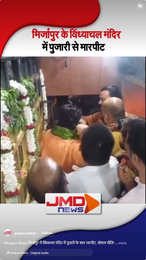 दावे की पड़ताल में वायरल वीडियो को रिवर्स सर्च करने पर हमें jmdnewsflash नाम के इंस्टाग्राम अकाउंट पर 8 जुलाई को पोस्ट मिला। वीडियो में इसे मिर्जापुर के विंध्याचल मंदिर में पुजारी से मारपीट का मामला बताया गया है।