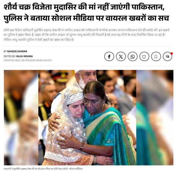 | दावा | शौर्य चक्र विजेता मुदासिर की मां को पाकिस्तान भेजा जा रहा है। |