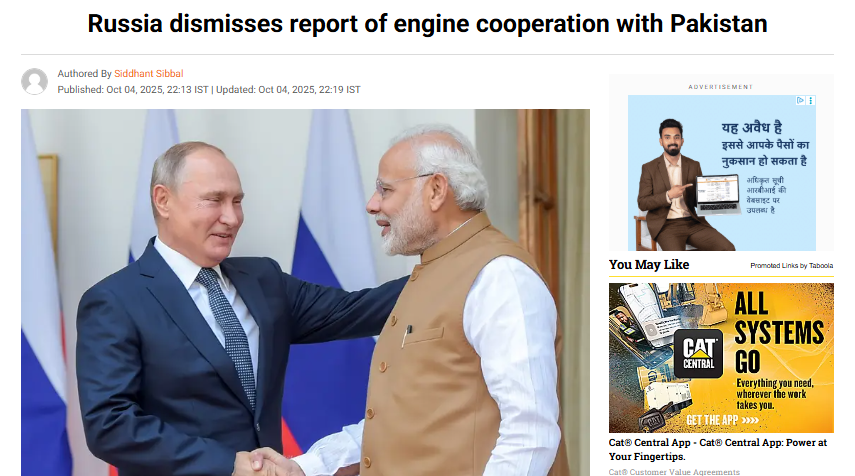 भारत के करीबी दोस्त रूस द्वारा पकिस्तान को फाइटर जेट इंजन देने की खबर सोशल मीडिया पर वायरल है। दावा किया जा रहा है कि रूस, पाकिस्तान को चीनी फाइटर जेट जेएफ-17 के लिए RD-93 MA इंजन दे रहा है। शल मीडिया पर इसे प्रधानमंत्री मोदी की विदेश नीति की एक बड़ी विफलता के रूप में प्रस्तुत किया जा रहा है। लोग सवाल उठा रहे हैं कि वर्षों की तथाकथित पर्सनल डिप्लोमेसी और हाई-प्रोफाइल विदेश दौरों के बावजूद भारत अपने सबसे पुराने सहयोगी रूस को भी पाकिस्तान को हथियार देने से रोकने में नाकाम क्यों रहा।