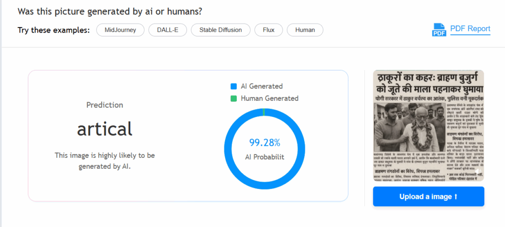 | निष्कर्ष | वायरल अखबार की कटिंग AI जनरेटेड है। यूपी में ऐसी कोई घटना नहीं हुई है। |