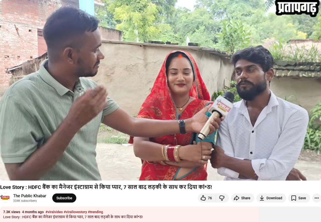 पड़ताल में हमने देखा कि इस कॉलज में माइक पर ‘The Public Khabar’ लिखा हुआ है। सर्च करने पर यह चैनल हमे यूट्यूब पर मिला। 7 अगस्त 2025 को इस वीडियो को ‘The Public Khabar’ पर पोस्ट किया गया है। इस यूट्यूब वीडियो के कैप्शन में इसे एचडीएफसी बैंक मैनेजर की इंस्टाग्राम लव स्टोरी बताया गया है।