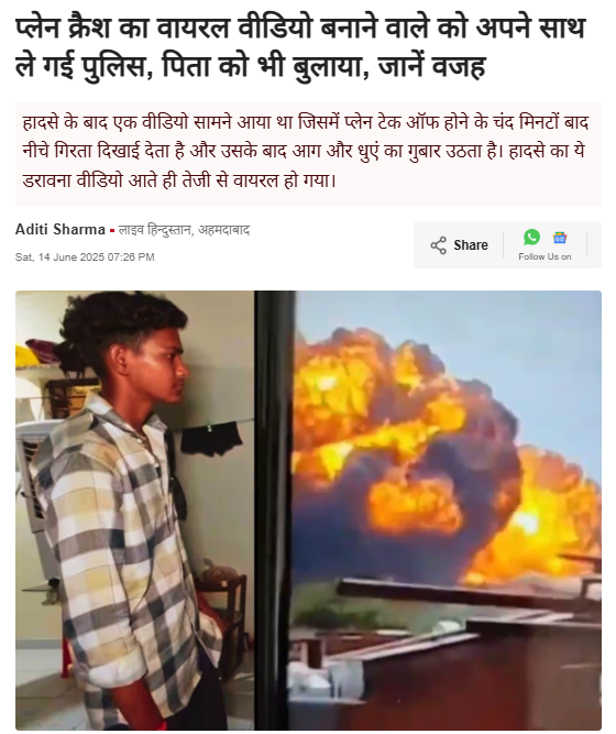 अहमदाबाद प्लेन क्रेश: जिस बच्चे ने गुजरात प्लेन क्रैश का वीडियो बनाया, पुलिस उसे पकड़कर ले जा रही है,