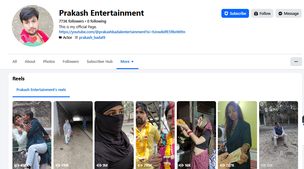 प्रकाश एंटरटेनमेंट ने अपने फेसबुक पेज पर खुद को एक एक्टर बताया है। साथ ही उनके चैनल पर इसी प्रकार के कई वीडियो उपलब्ध हैं।