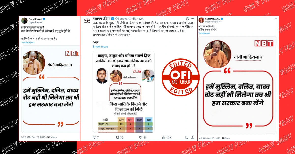 पड़ताल में आगे हमें नवभारत हिन्दी न्यूज़ के एक्स हैंडल पर ही वायरल पोस्टकार्ड को लेकर नवभारत का खंडन मिला। नवभारत ने स्पष्ट किया है कि NBT के नाम से वायरल हो रहा यह पोस्ट फर्जी है।