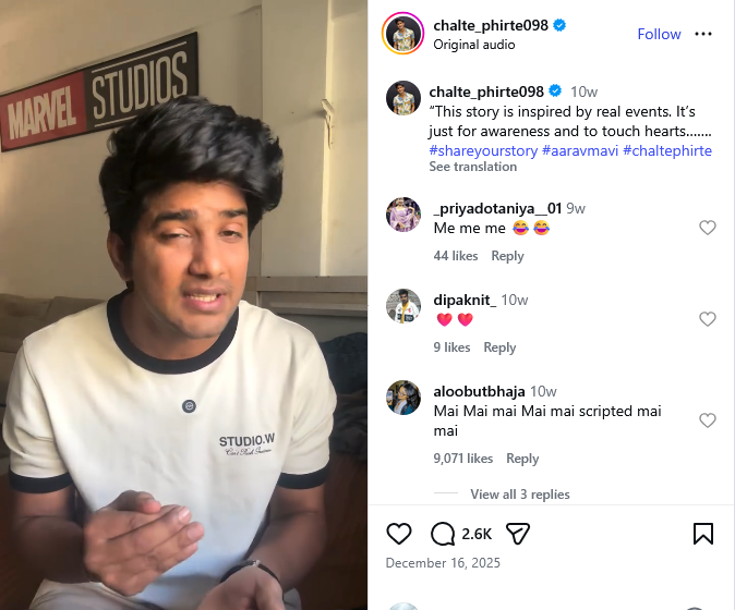 इस इंस्टाग्राम पेज को खंगालने पर हमने पाया कि यह पेज आरव मावी नाम के एक व्यक्ति का है। जन्होने इंस्टाग्राम पर खुद को एक डिजिटल कंटेंट क्रिएटर बताया है। इस पेज पर ब्रेकअप और रिलेशनशिप्स को लेकर इस प्रकार के कई वीडियो मौजूद हैं।