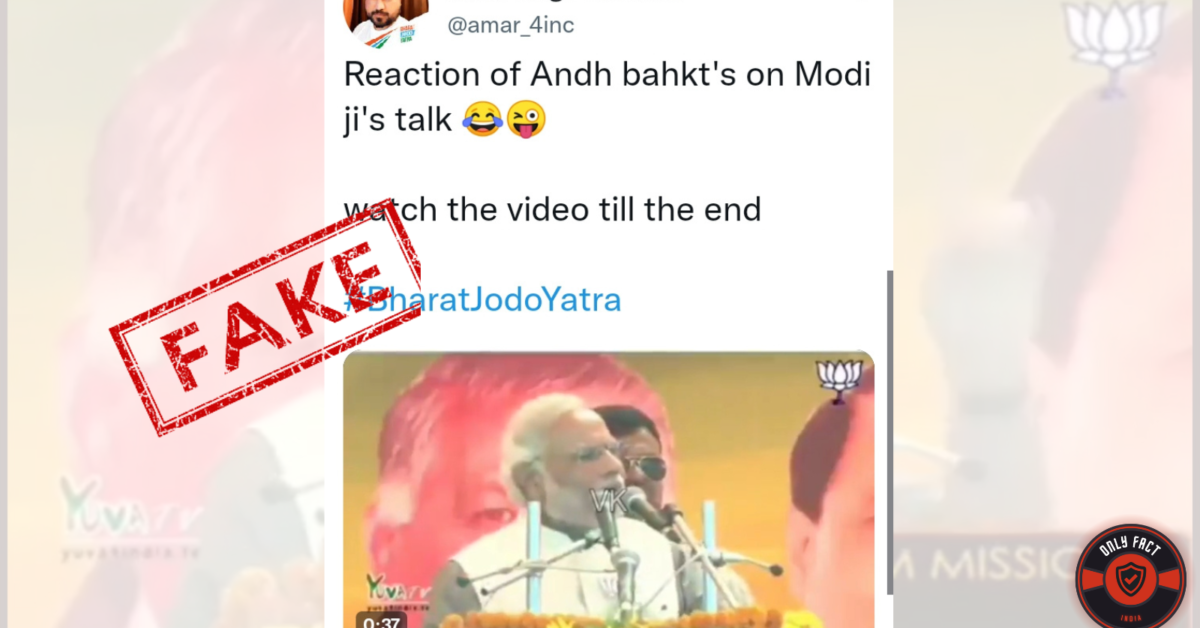 अपनी पड़ताल में AAP और GSTV द्वारा शेयर किए गए वीडियो तथा इस वीडियो की तुलना करने पर हमने पाया कि इस वीडियो में पहले मंच पर स्पीकर गोयल का स्वागत करते हैं, उसके बाद वो जनसभा संबोधित करते हैं जबकि AAP द्वारा शेयर किए गए वीडियो में 3 छोटी छोटी वीडियो क्लिप्स को मिलाकर एक वीडियो बनाया गया है।
